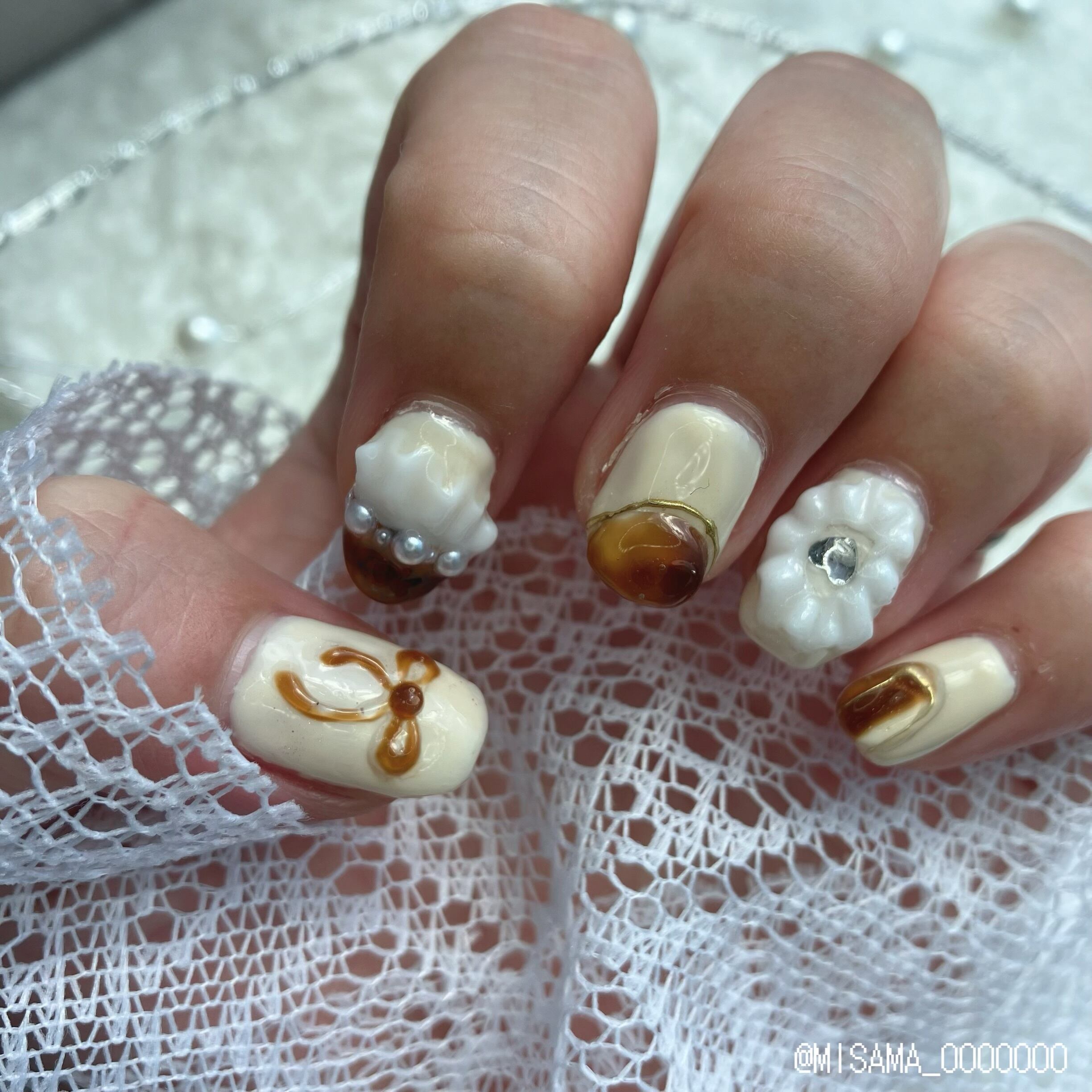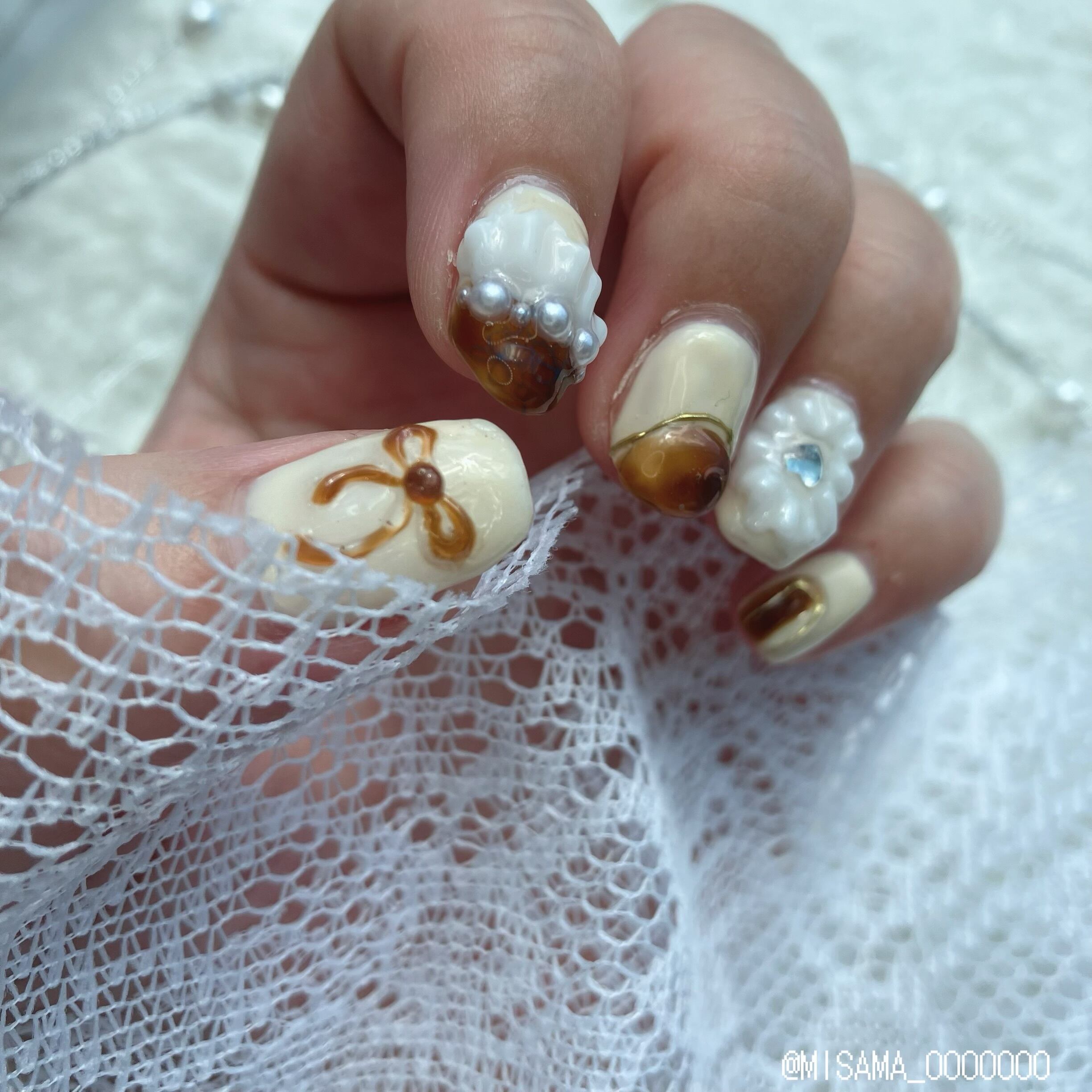 フリルリボンネイルの秋冬ネイルに仕上げました。