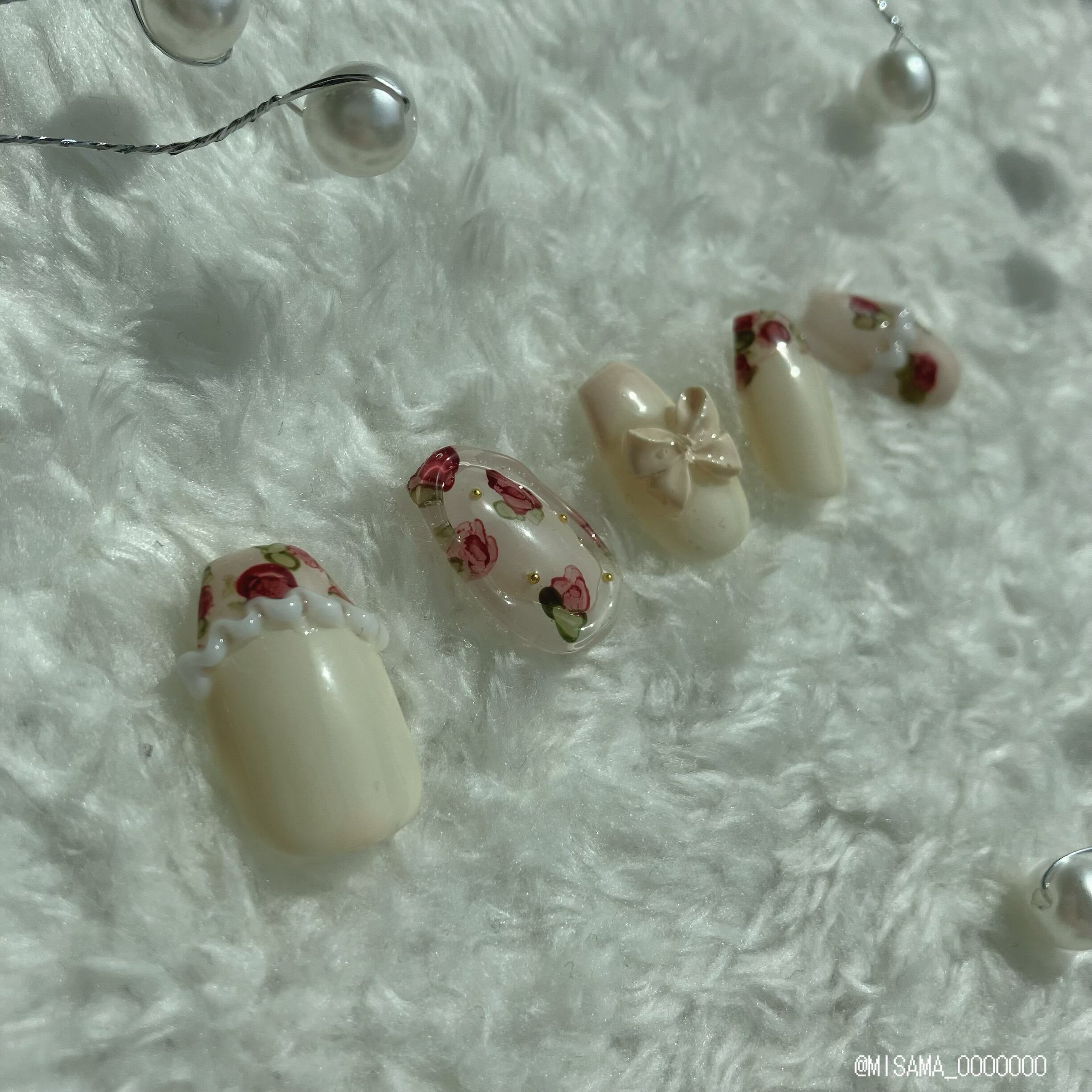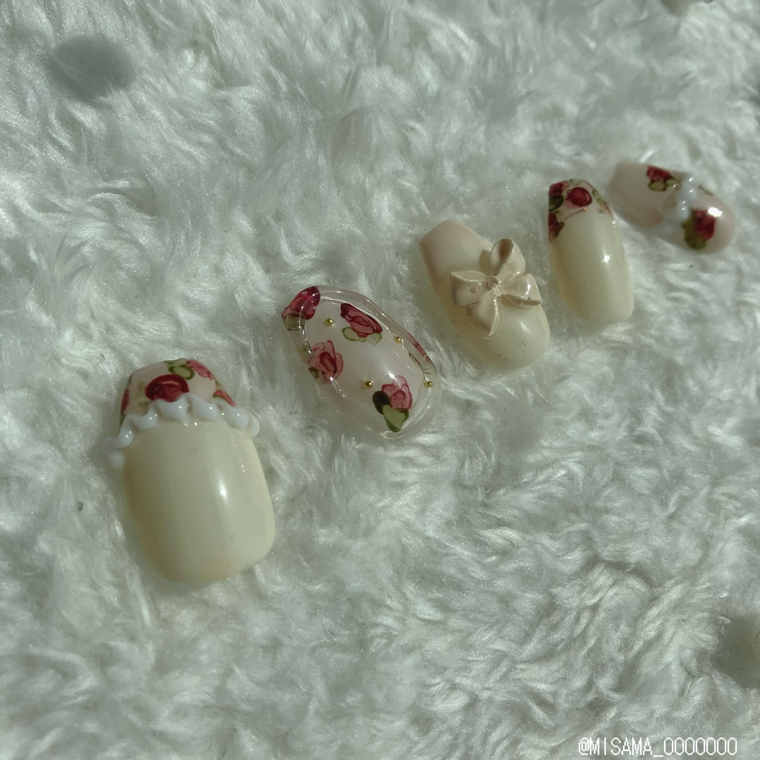 薔薇のフラワーリボンネイルに仕上げました☺︎